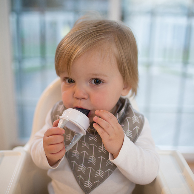 Silikonska hranilica ima male rupice koje propuštaju dovoljno hrane da se beba bezbedno hrani. Meka je, ali izdržljiva i može da primi bilo šta, od sveže hrane do smrznutih poslastica.