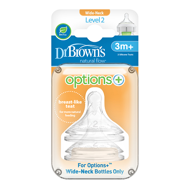 U pakovanju se nalaze dve WIDE NECK silikonske cucle veličine 2 (za bebe starije od 3 meseca). Ove cucle ogovaraju za WIDE NECK i STAKLENE flašice.
